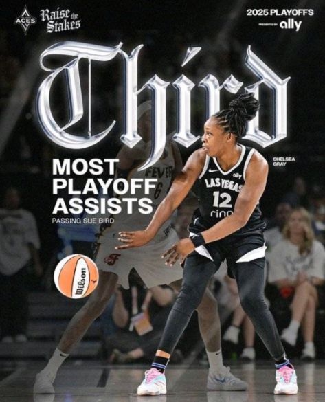 王牌核心格雷季后赛助攻数超越名宿苏伯德,升至WNBA季后赛历史第三位,仅次于范德斯洛特与水星球员托马斯。